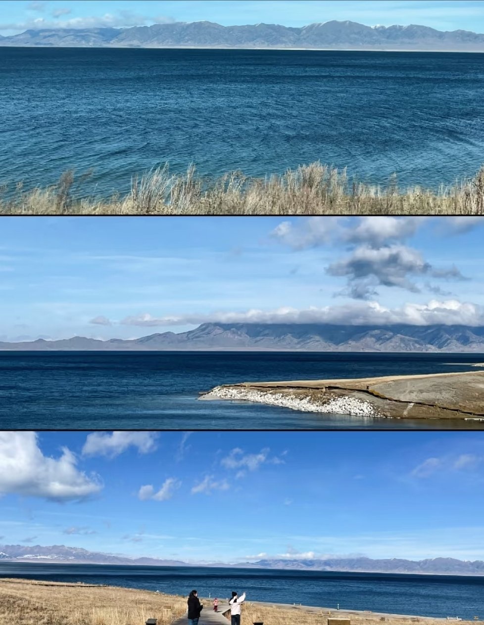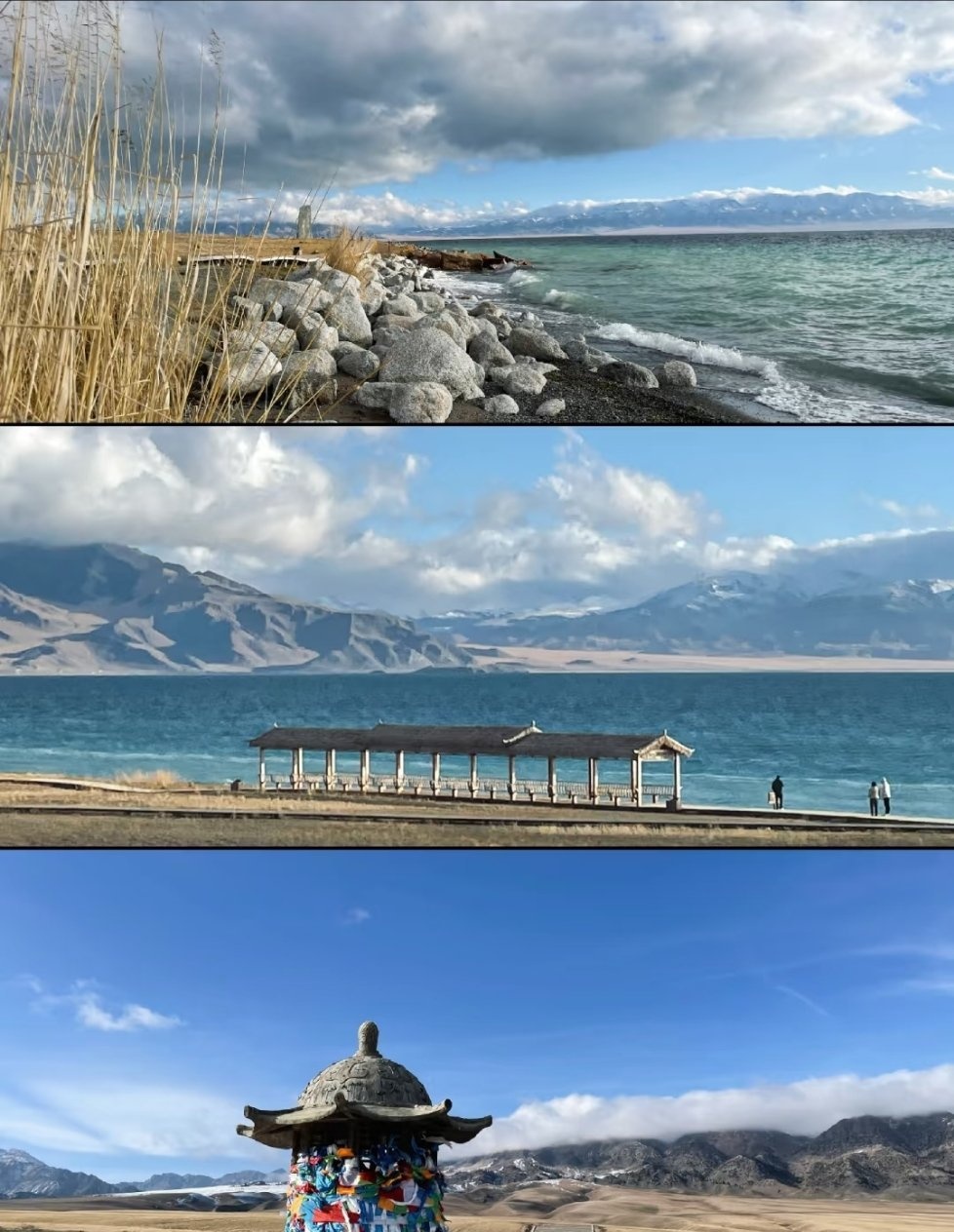 它在新疆博尔塔拉蒙古自治州博乐市西南部,北天山山脉中,天山西段,准噶尔盆地西南端,312 国道就傍着湖岸,位置独特又方便抵达。