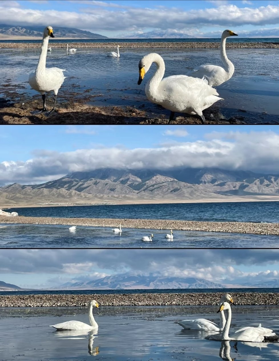 蒙古语叫 “赛里木淖尔” ,是 “山脊梁上的湖” ;古称 “净海”“西方净海” ;哈萨克语里是 “平安”“祝愿” 。光是名字,就藏着满满的诗意。湖面海拔 2073 米,是新疆海拔最高的微咸冷水湖 。