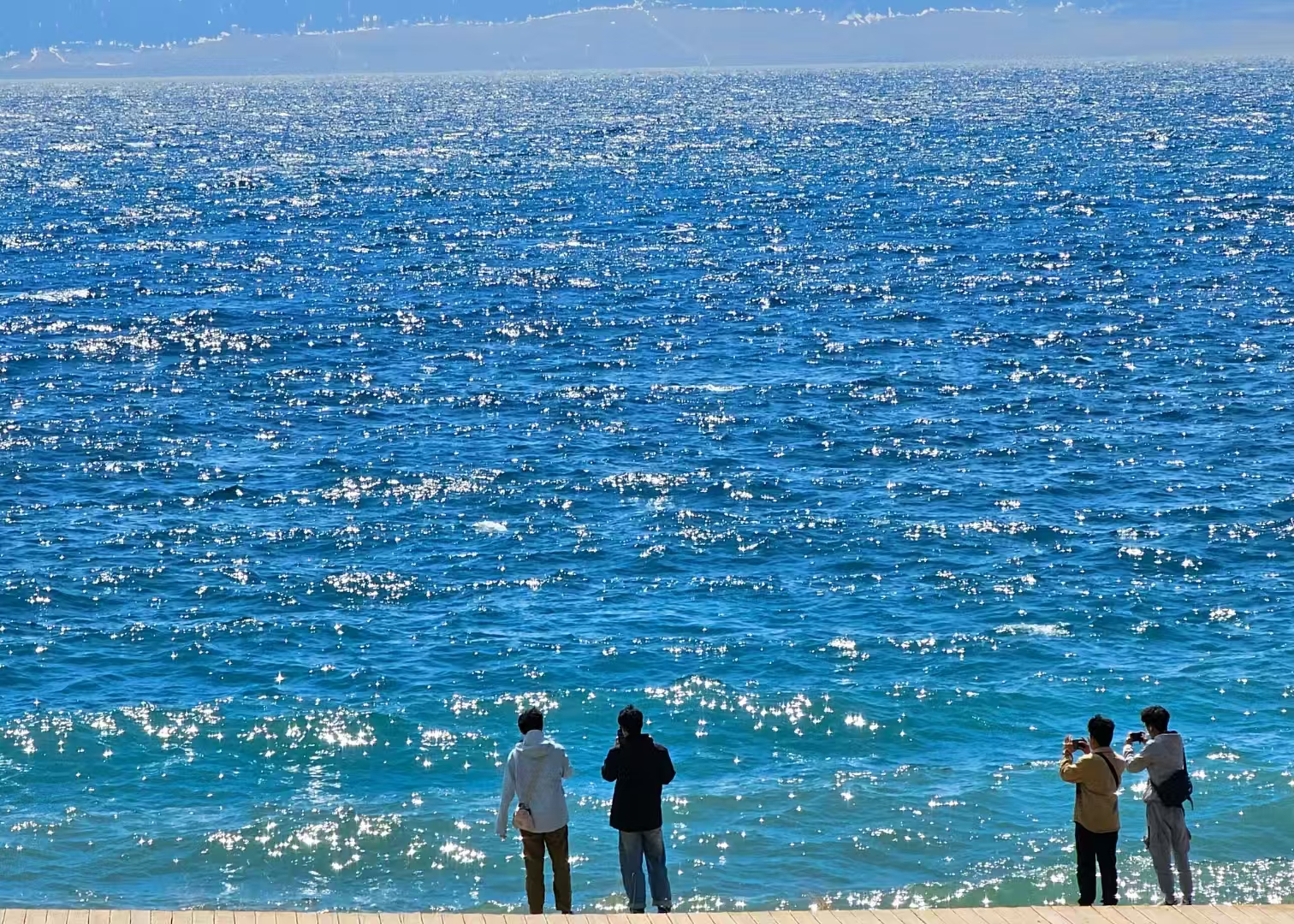 你一走近它,就像打开了上帝的调色盘:湖水蓝得发亮,阳光洒下来,湖面一会儿碧蓝、一会儿深蓝,风轻轻一吹,波光粼粼,像极了打碎的蓝宝石。